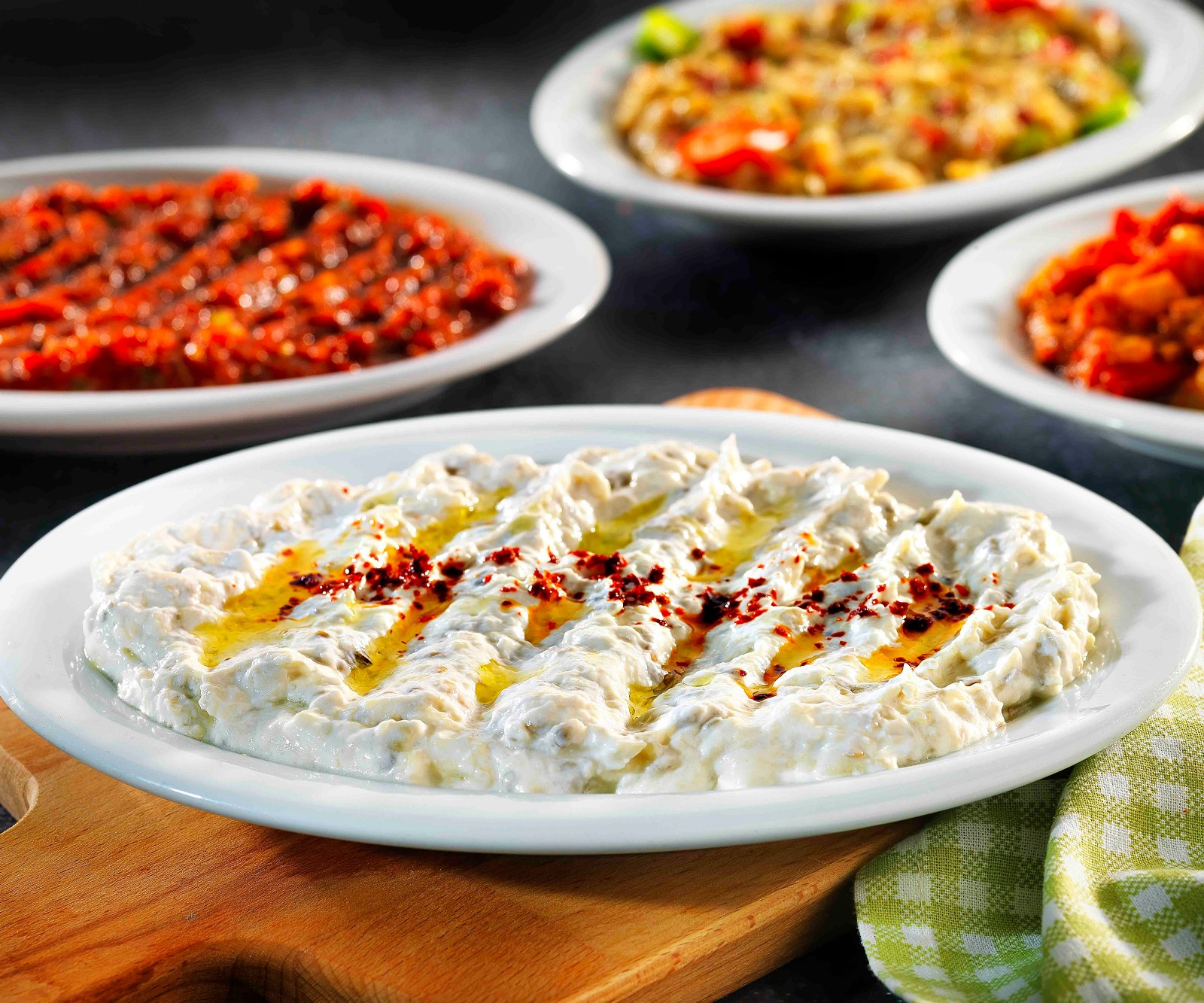 Közlenmiş Patlıcana Kırmızı Biber, Sarımsak, Sirke, Limon Suyu, Karabiber İlave Edilerek Servis Edilir.